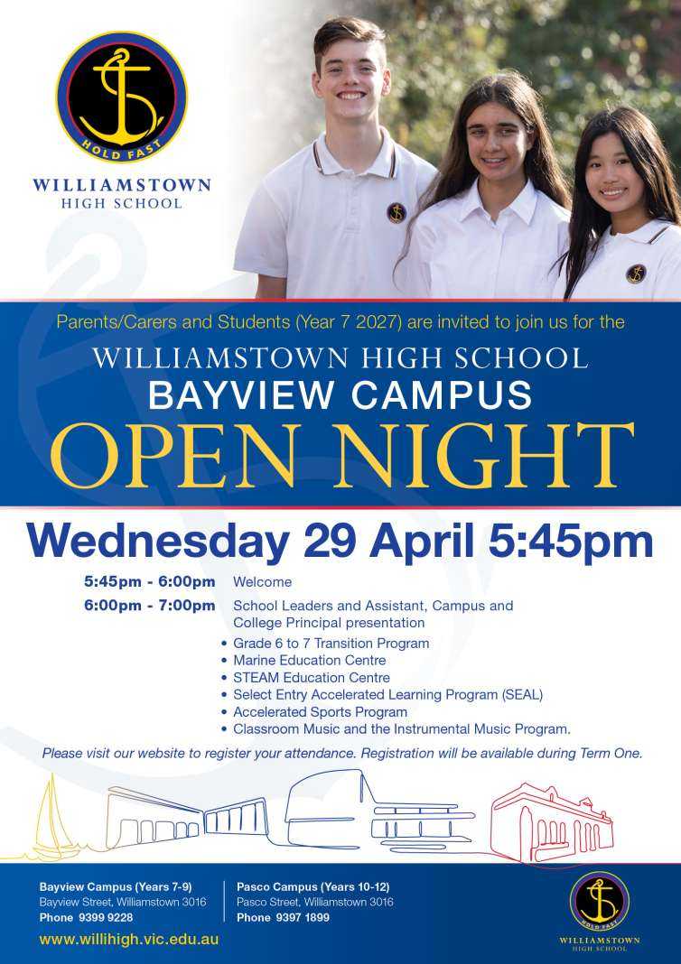 Williamstown High School Bayview Campus Open Night (Year 7, 2027)